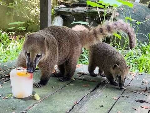 提供園區圈養動物多樣化食物,以符合原生環境所需營養,增進營養補充及延長進食時間,達餵食豐富化。