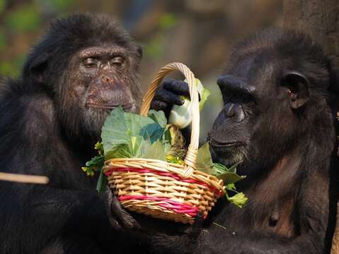 動物們面對加菜展現的有趣行為,常把一旁觀察的同仁及保育員逗得大笑,黑猩猩的舉動堪稱年節爆笑小劇場,個性「衝崩」的「莉忠」提著菜籃的模樣像極趕辦年貨的人類,結果健步飛快地把年貨全灑出來散落一地;「美珍」小心翼翼雙手環抱著地上擺放的豐盛蔬菜,彷彿在享受一場美味的野餐;「曼華」小心翼翼的護著小菜籃,拿到喜歡的地方才慢條斯理的一口一口品嚐!動物園補充說,為提供動物們平日鮮少接觸到的食材,本次挑選菠菜、長滿黃花的油菜、奶油白菜、甜椒、玉米筍、黃帝豆、四季豆等多元季節食蔬,輔以水果、花生、龍眼提味,可說是營養滿分、色香味俱全,希望能讓動物一起感受年節氛圍,拉近與遊客的距離。