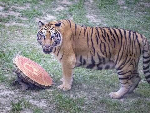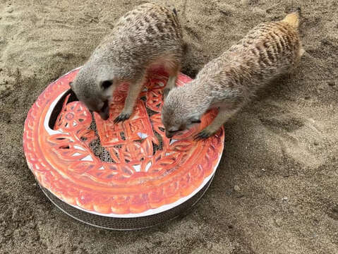園方也使用牧草、仙人掌、紅蘿蔔及柳橙等蔬果製成果凍月餅,並以黃槿葉盛裝。美食當前,長鬃狒狒愛不釋手,不喜歡吃紅蘿蔔的冠豪豬也不敵誘惑,象龜更將黃槿葉吃個精光。此外,狐獴的特製月餅需透過利爪挖取才能順利享用藏在月餅內的麵包蟲及大麥蟲;孟加拉虎的貓薄荷月餅則是使用回收瓦楞紙製作的圓形貓抓板,「二妞」及「阿生」立刻上前抓取玩樂。