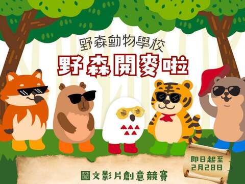 觀光局說明,「野森開麥啦」競賽期間自2月1日起至2月28日止,為期一個月,分「城市小特派」(圖文組)與「野森推廣大使」(短影音組)兩大組別。「城市小特派」創作者只要在活動期間於臉書FB或IG發布具有「野森動物學校」意象之城市宣傳場景(如路燈旗、公車車體、輕軌彩繪列車、捷運燈箱及車廂)或試營運活動體驗之圖文,Hashtag「#動物是最棒的老師」即可參加比賽,臉書FB或IG貼文互動人氣前10名作品將獲得「野森動物學校」限量玩偶。