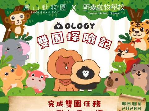 此外,百萬人氣插圖角色「掰掰啾啾奧樂雞」首次跨足動物界,由奧樂雞擔任探險隊長,帶領民眾走進「壽山動物園」與「野森動物學校」,展開2月限定「雙園探險記」。活動結合數位互動任務與豐富摸彩獎項,禮品包含55吋QLED 電視、Switch、AirPods 等總價值10萬元大獎。邀請大小朋友透過活動專屬官方line互動遊戲,認識動物與自然生態,開啟最有趣的親子冒險旅程。