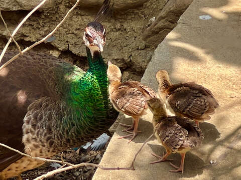 觀光局長高閔琳表示,壽山動物園正值孔雀繁殖期,園內「友禽天地」常見母孔雀與小孔雀一起出現覓食的溫馨畫面。孔雀媽媽深怕幼子落單還不時回頭確認是否跟上,小小動作滿滿母愛;但孔雀生性膽小機敏易受驚嚇,日前曾發生遊客追逐新生小孔雀造成孔雀媽媽棄子的動物行為。當時保育員周潔如即化身為動物保母,接手進行人工餵養接手照料;先用毛巾裹著小孔雀,模擬孔雀媽媽將孩子呵護在羽翼下的環境,降低緊迫感。目前進入人工照養階段,保育員除持續觀察羽毛及身體狀況,並隨時與獸醫保持聯繫,預計六個月後可再回到展場與大小朋友見面。