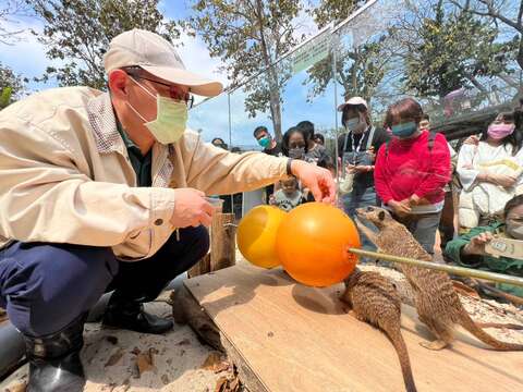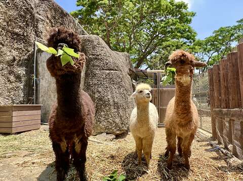 去年12月誕生的羊駝「白拿鐵」和「白長襪」則已逐漸成長茁壯。白拿鐵個性獨立不常黏在媽媽「拿鐵」身邊,而白長襪則常常跟媽媽「小黑」撒嬌、黏TT地想吸奶。保育員劉家宏補充說,白長襪遺傳到媽媽的長腿基因,和姐姐「真真」算是羊駝界高挑美女;近期天氣炎熱,羊駝家族特愛窩在獸舍內吹冷氣,近期將為羊駝剪毛消暑。保育員陳裕琪則為深受小朋友喜愛的狐獴設計覓食玩具,讓牠們吃得健康也玩得開心。而侏儒河馬「圓寶」外表雖已轉大人,但內心似乎還不想長大,依舊會望向媽媽「春圓」或保育員討拍,可愛萌樣也擄獲不少遊客的心。